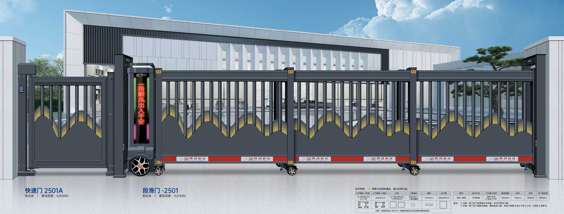 佛山市金朝發智能科技有限公司創立于1997年,生產基地座落于廣東佛山,主要以門道產品和門道電機產品為主,集研發、生產、銷售、售后服務為一體的現代化企業,我們薈萃國內電動伸縮門生產領域精英,引進世界領先設備,建立完善的管理體系.采用優質的原料,門道產品主要生產有:電動伸縮門、智能停車場收費系統、智能道閘、空降閘、廣告道閘、廣告小門;門道電機產品主要生產有:平移門電機、拉臂電機、曲臂電機、中置機、車庫門機等,品種齊全。
